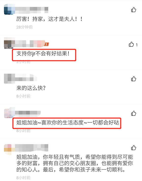 看到她上线后,网友也纷纷在下面留言支持。有网友表示“贱人不会有好结果!”,还有网友表示“喜欢你的生活态度,一切都会好哒”,有网友喊话广大网友就是你坚强的后盾,还有网友在为董花花加油时怒喷张大奕是“假脸碧池”。还有网友为她支招,称不要离婚拖死他们。